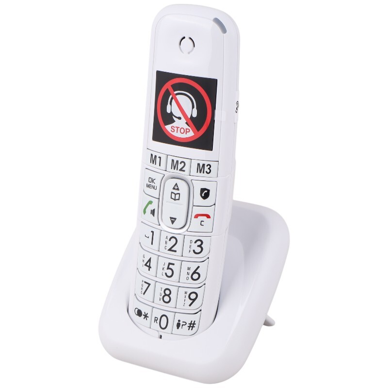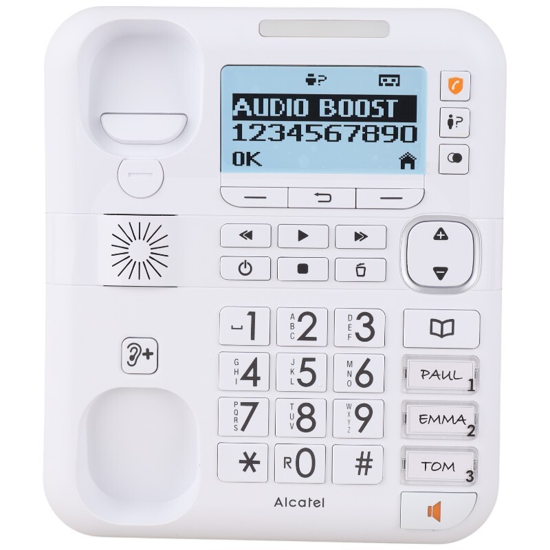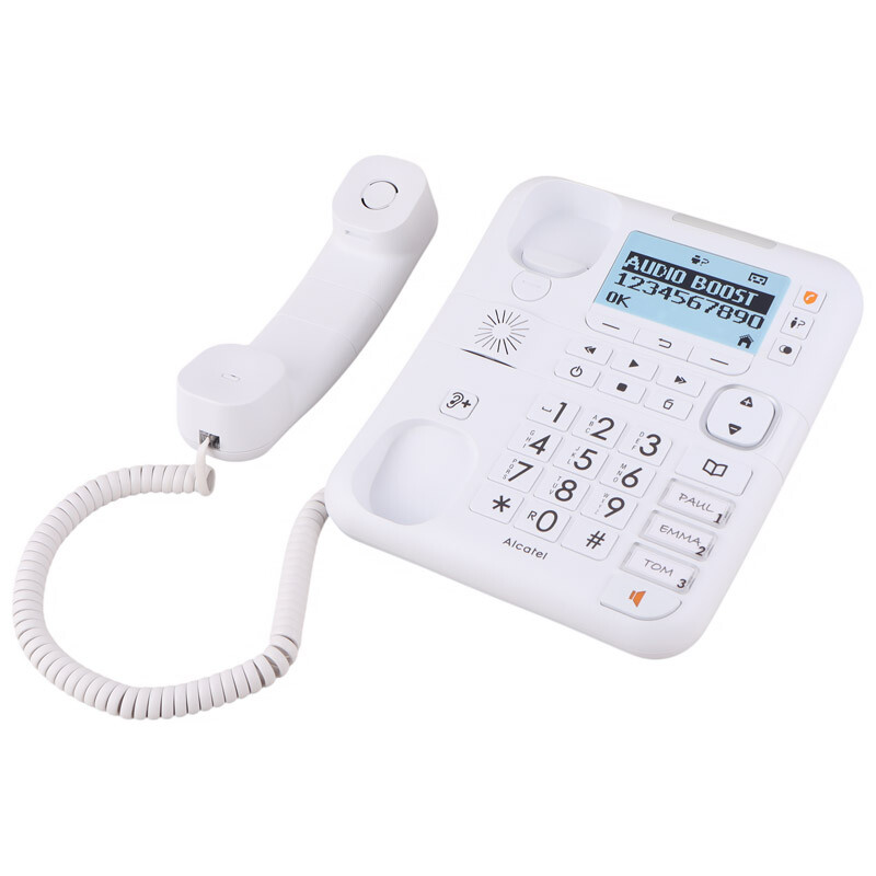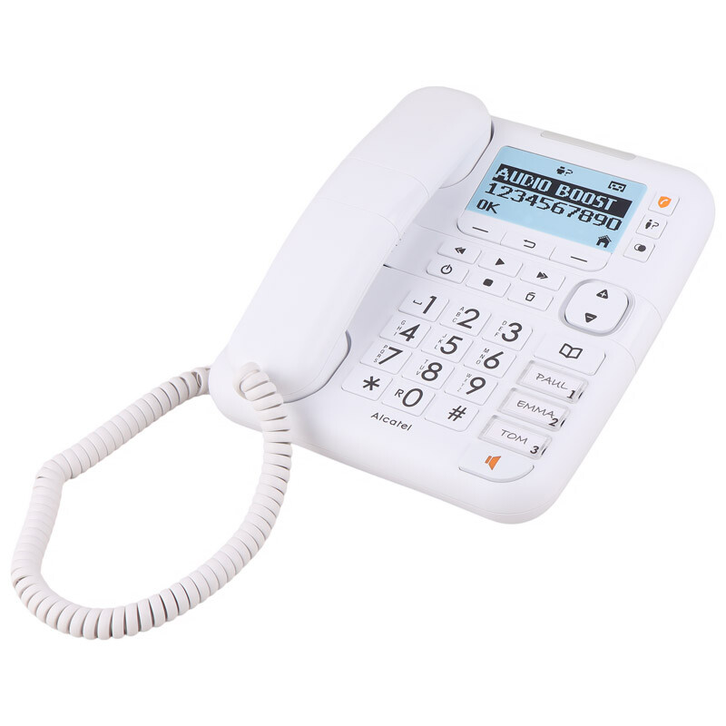 مجهز به صفحه نمایش 4 خطی با نور پس زمینه آبی، بهره مندی از صفحه کلید با کلیدهای بزرگ و نشانگر نورانی زنگ تماس