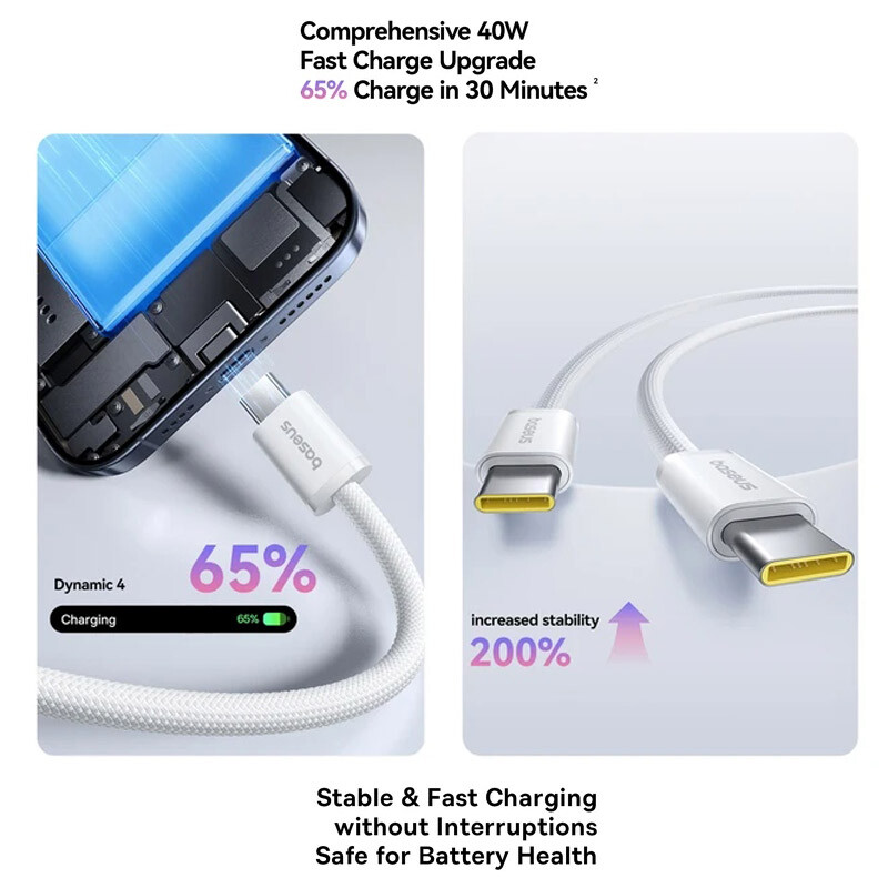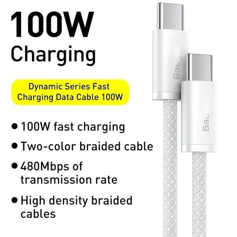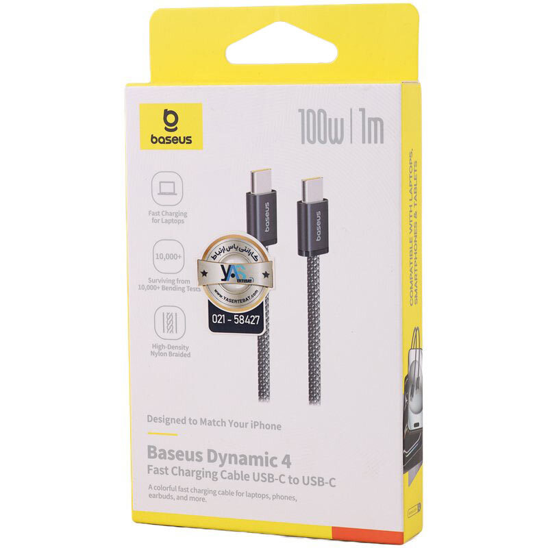 کابل دو سر تایپ سی فست شارژ 100 وات باسئوس P10381400111 طول 1 متر