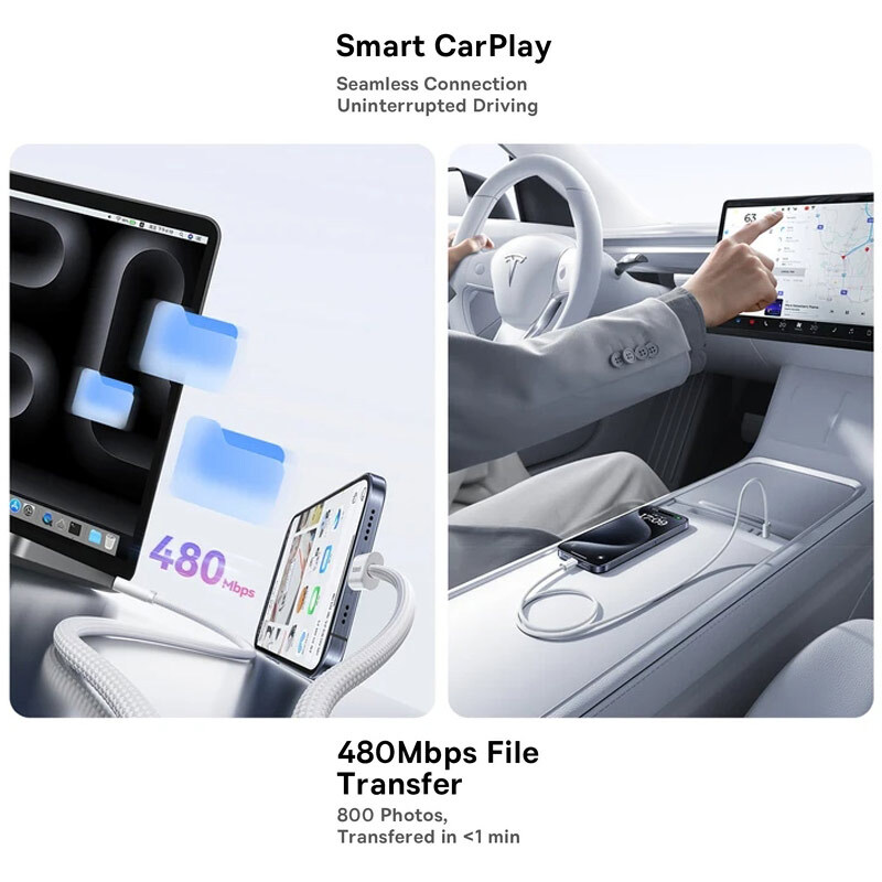 مورد استفاده برای انتقال اطلاعات با سرعت 480 مگابایت بر ثانیه، مجهز به شارژ سریع برای دستگاهای سازگار با توان خروجی 100 وات