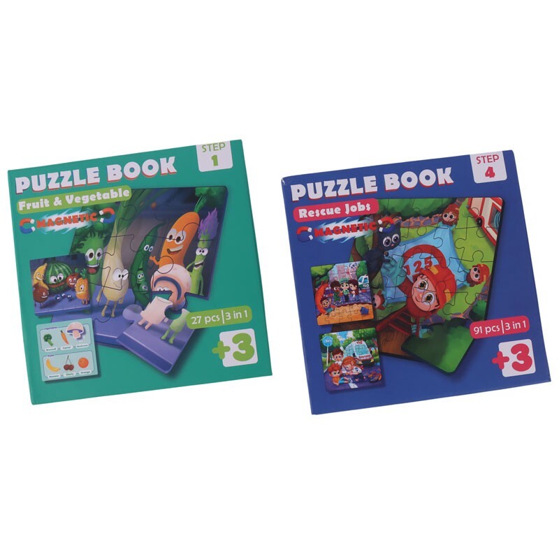 هر بسته شامل 3 عدد پازل با قطعات مختلف، پازل ها شامل طرح مشاغل، حیوانات، ورزشی، میوه، سبزیجات و ...
