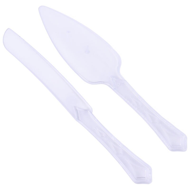 ارائه شده در ست دو تیکه کارد و چاقو، ساخته شده از جنس پلاستیک مرغوب، مقاوم در برابر ضربه و فشار احتمالی، مناسب برای عروسی، تولد، مهمانی و ...