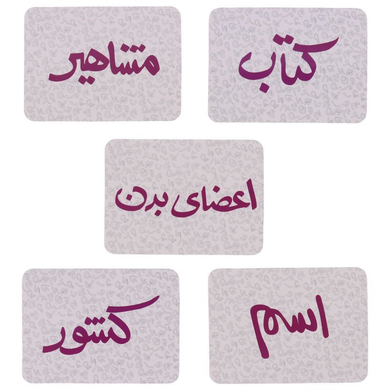 ابتدا یک کارت از کارت موضوع را به رو برگردانید تا همه عنوان نوشته شده روی آن را ببینند. عناوین کارت ها عبارتند از مشاهیر، ماشین، غذا، رنگ و ... حال باید یک کارت از کارت های حروف را برگردانید. اولین نفری که جواب بازی را طبق موضوع و حرف روی کارت بیان کند،