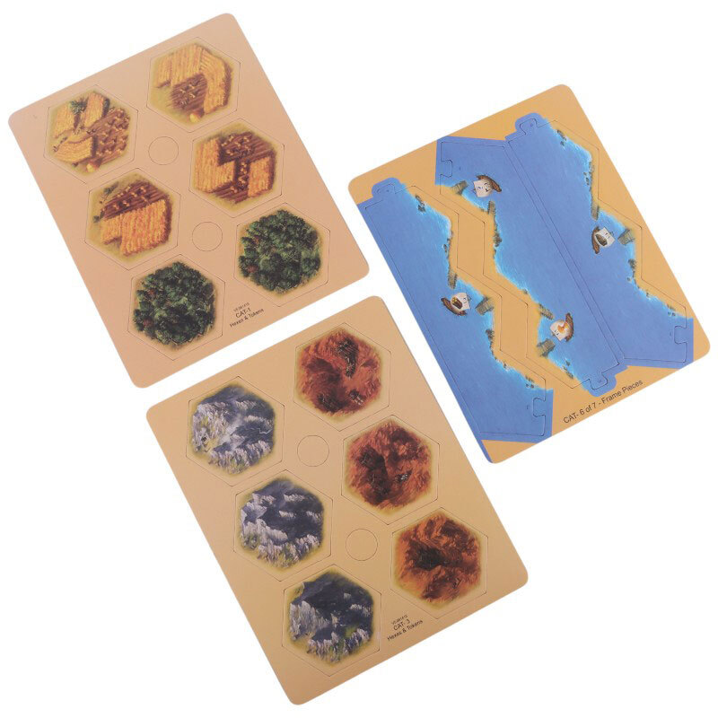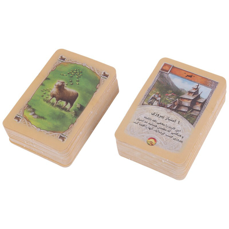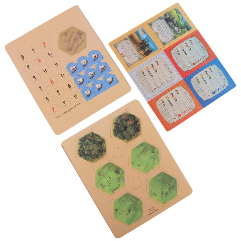 برخورداری از 19 منطقه بازی، 6 قطعه دریا، 18 قطعه توکن، 95 عدد کارت منابع، 25 عدد کارت شانس، 4 عدد کارت راهنمای ساخت، 60 قطعه جاده (15 جاده برای هر بازیکن)، 20 قطعه خانه (5 خانه برای هر بازیکن)، 16 قطعه شهر (4 شهر برای هر بازیکن)، 2 عدد تاس بازی، مهره دزد و کتابچه راهنمای فارسی
