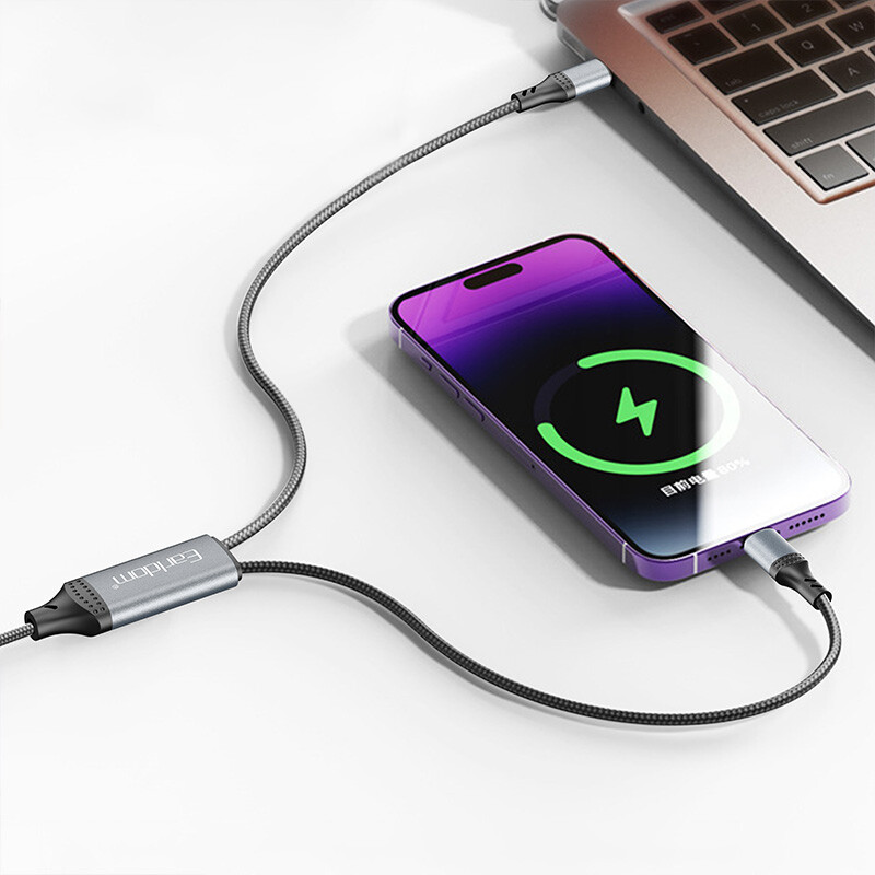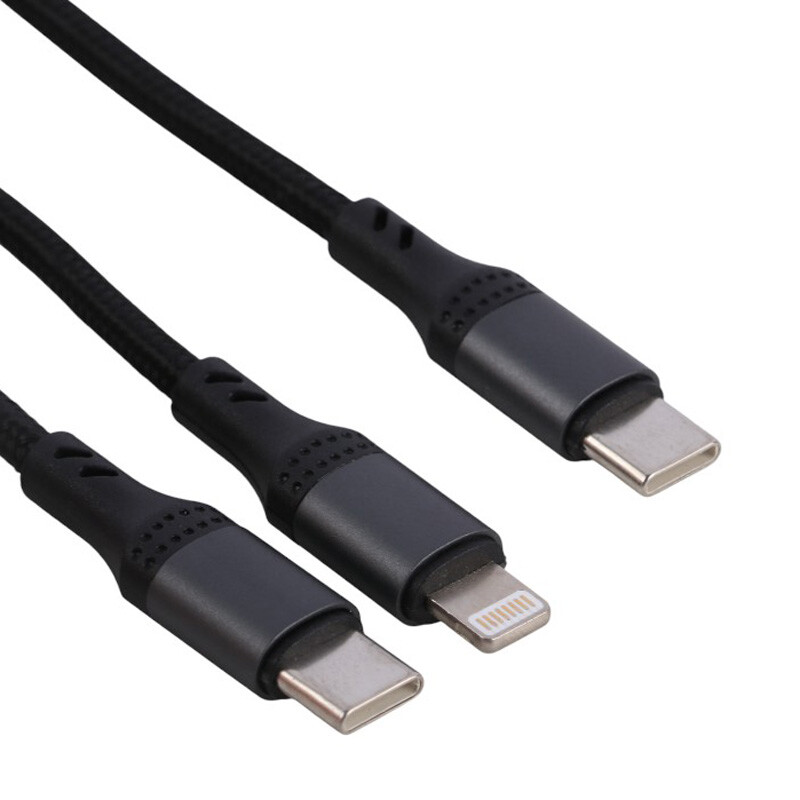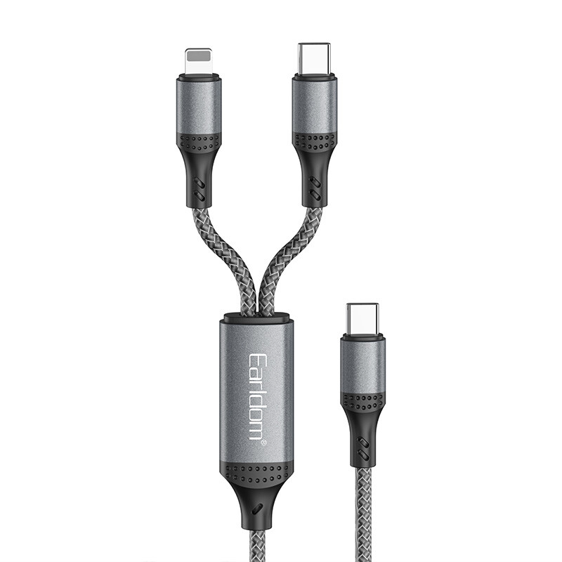 Earldom EC-IC04 PD 60W 1.2m Type-C To Dual Type-C & Lightning Cable
