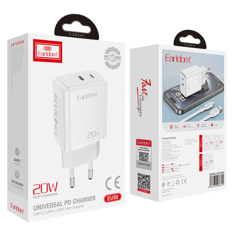 شارژر دیواری 20 وات ارلدام ES-EU50 PD 3A