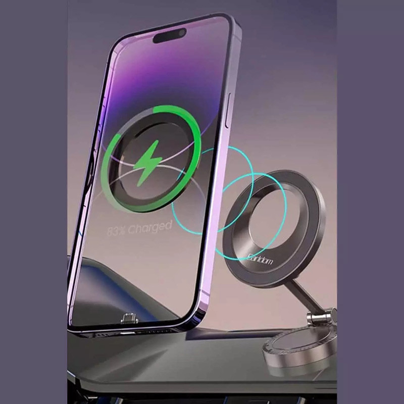 مجهز به نگهدارنده مغناطیسی با آهنربای قوی، مناسب برای اتصال گوشی های سازگار در سایز 4.7 الی 7.2 اینچ با امکان تنظیم ارتفاع و جمع شوندگی برای حمل آسان