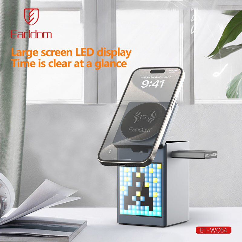 شارژر وایرلس، ساعت، زنگ هشدار و استند ارلدام مدل ET-WC64