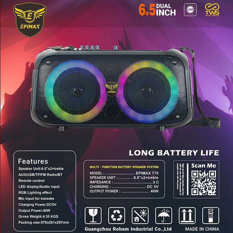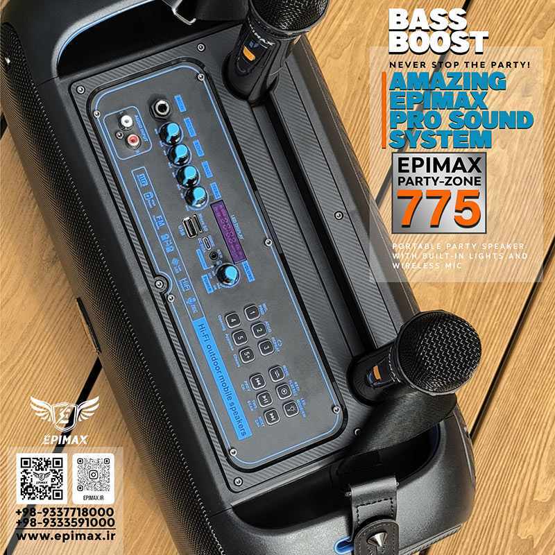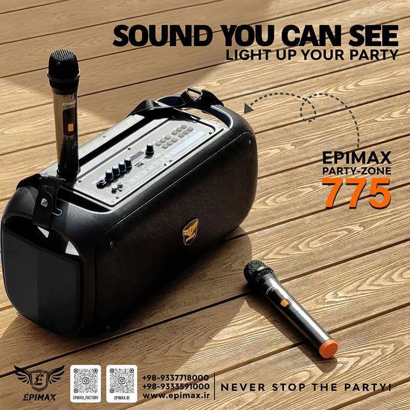 اسپیکر بی سیم قابل حمل Epimax مدل Epimax 775 همراه با میکروفون و ریموت کنترل