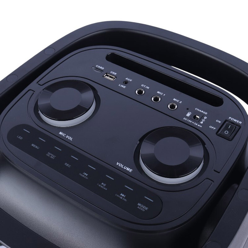 مجهز به 2 درایو 8 اینچی با توان خروجی 100 وات، دارای پورت فلش مموری USB و درگاه حافظه TF جهت پخش فایل های ذخیره شده