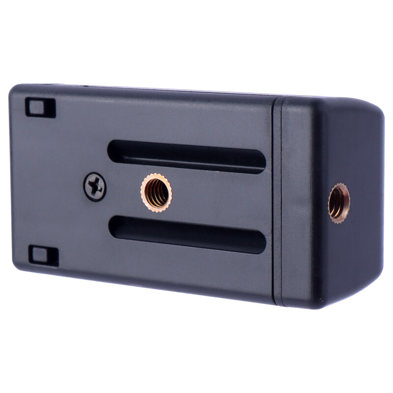 دارای دو پیچ استاندارد جهت نصب روی سه پایه، تجهیزات عکاسی و فیلم برداری