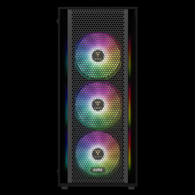 فن های نصب شده در کیس شامل 3 عدد فن 120 میلی متری RGB در جلو و 1 عدد فن 120 میلی متری RGB در پشت