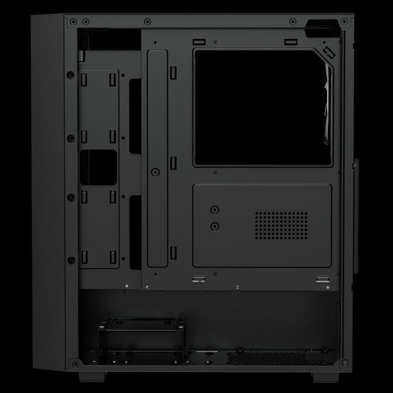 فرم فاکتور Mid Tower و دارای 7 عدد اسلات توسعه، بدنه ساخته شده از جنس فلز SPCC، پلاستیک ABS و شیشه حرارت دیده