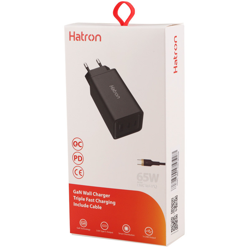 Hatron HWC3651PQ 3Port QC3.0 PD 3.25A 65W Fast Wall Charger With Type-C To Type-C Cable