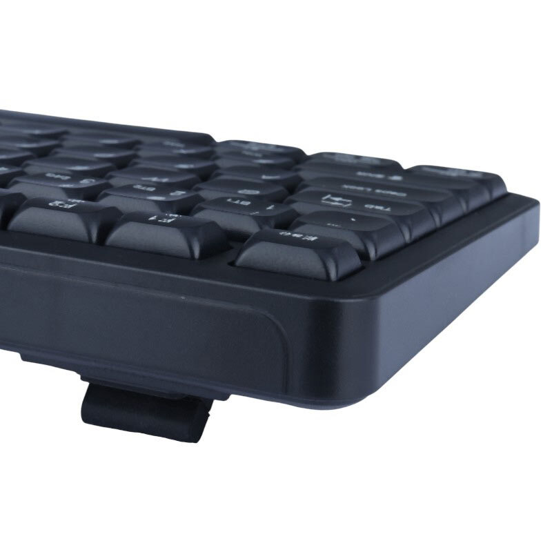 کیبورد دارای 104 عدد کلید، مجهز به کلید های مولتی مدیا و اعداد، پشتیبانی از قابلیت بی صدا با حداکثر میزان نویز تولیدی کیبورد حدود 20 دسی بل و پایه تنظیم