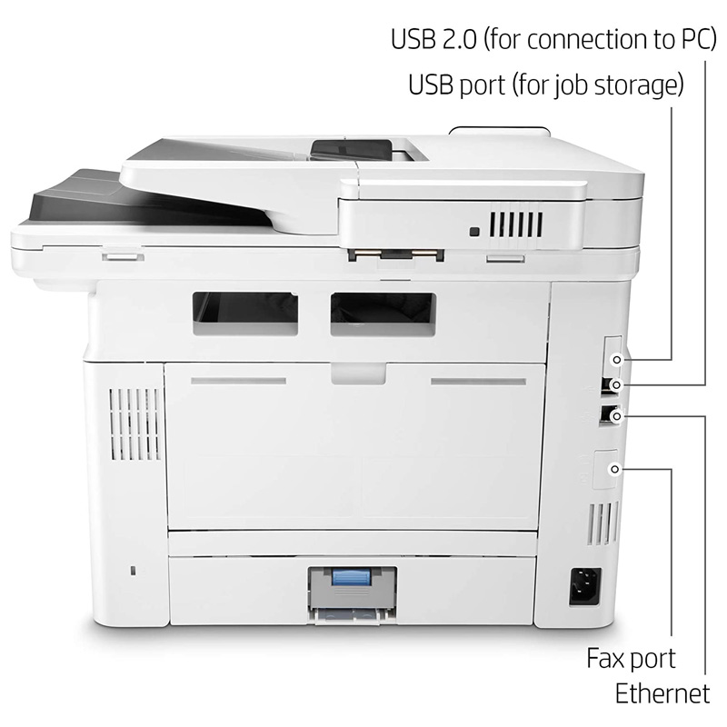 برند اچ پی پرینتر چندکاره مدل LaserJet Pro MFP M428fdn را با فناوری چاپ لیزری، پرینت، اسکن، فکس و کپی به صورت سیاه و سفید معرفی و به بازار عرضه کرده است. این دستگاه چند کاره از ابعادی برابر با ۴۲۰x390x323 میلی متر و با وزنی حدود ۱۳ کیلوگرم ساخته شده که با قرارگیری بر روی میز، فضای زیادی را اشغال نمی کند و قابلیت جابجایی توسط فرد را نیز امکان پذیر می کند. همچنین صفحه نمایش رنگی لمسی از نوع LCD بر روی آن تعبیه شده تا مدیریت بهتری بر انجام عملیات های دستوری این پرینتر چند کاره داشته باشید. سایز کاغذ مورد استفاده در این دستگاه حداکثر کاغذ A4 می باشد و سینی آن ظرفیت نگهداری ۲۵۰ عدد برگه را دارد، همچنین پرینتر MFP M428fdn از یک سینی کاغذ چند منظوره نیز برخوردار است که قابلیت نگهداری ۱۰۰ برگ را خواهد داشت.M428fdn از درگاه Ethernet برای اشتراک گذاری در شبکه ها و پورت USB 2.0 برای اتصال به کامپیوتر و دیگر دستگاه های سازگار پشتیبانی می کند، قابلیت اتصال فلش مموری USB و استفاده از نرم افزارهای چاپ مانند HP Smart App برای این دستگاه وجود دارد تا روش های بیشتری برای فرآیند چاپ اسناد بدون درنظر گرفتن فاصله و روش های دستی را داشته باشید.