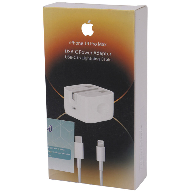 شارژر دیواری اورجینال 20 وات اپل iPhone 14 Pro Max PD 3A + کابل آیفونی