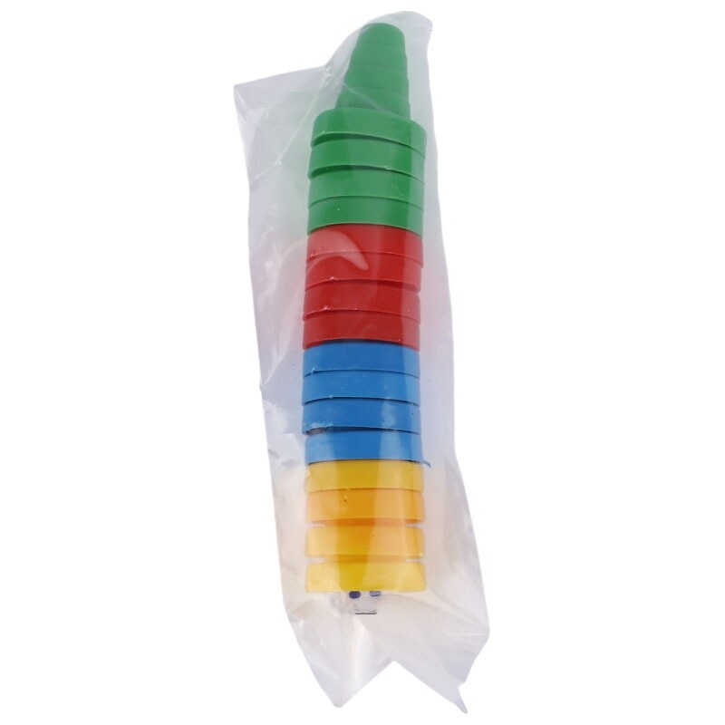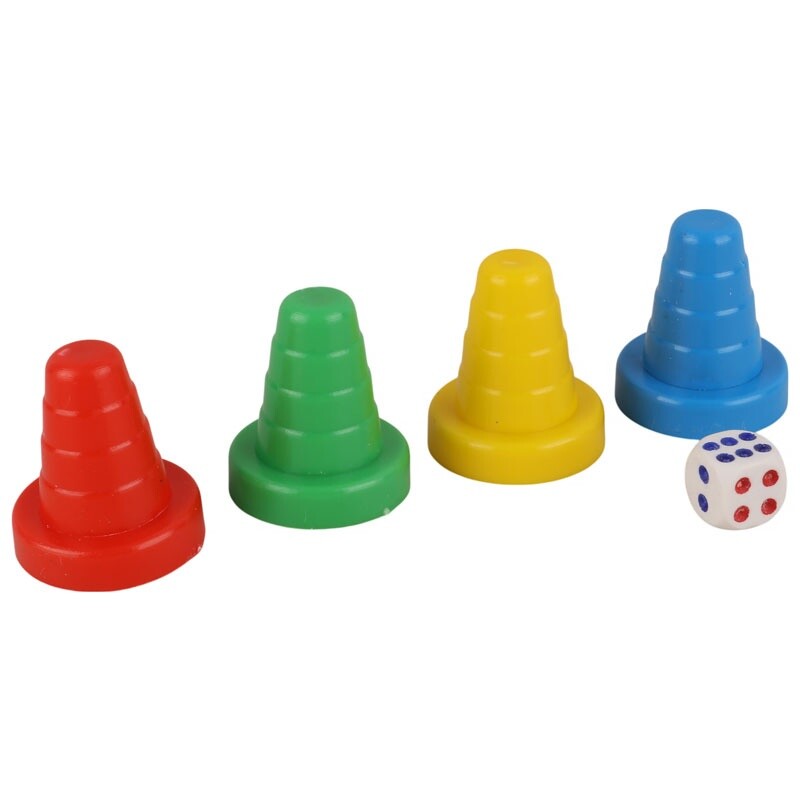 شامل 16 عدد مهره پلاستیکی در رنگ های آبی، قرمز، سبز و زرد و یک عدد تاس