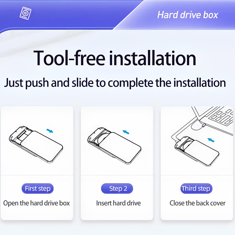 پشتیبانی از SSD و هاردهایی با سایز 7 الی 9.5 میلی متر و حداکثر ظرفیت 6 ترابایت، دارای رابط خروجی Type-C با سرعت انتقال 5 گیگابیت بر ثانیه