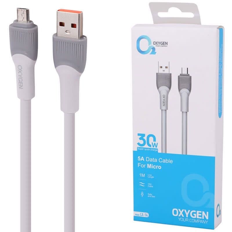 کابل میکرو یو اس بی فست شارژ 30 وات اکسیژن LX-14 طول 1 متر