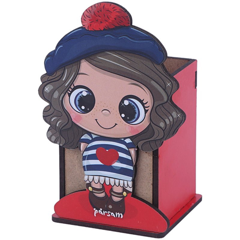 جامدادی چوبی Parsam طرح دختر کلاه آبی قرمز