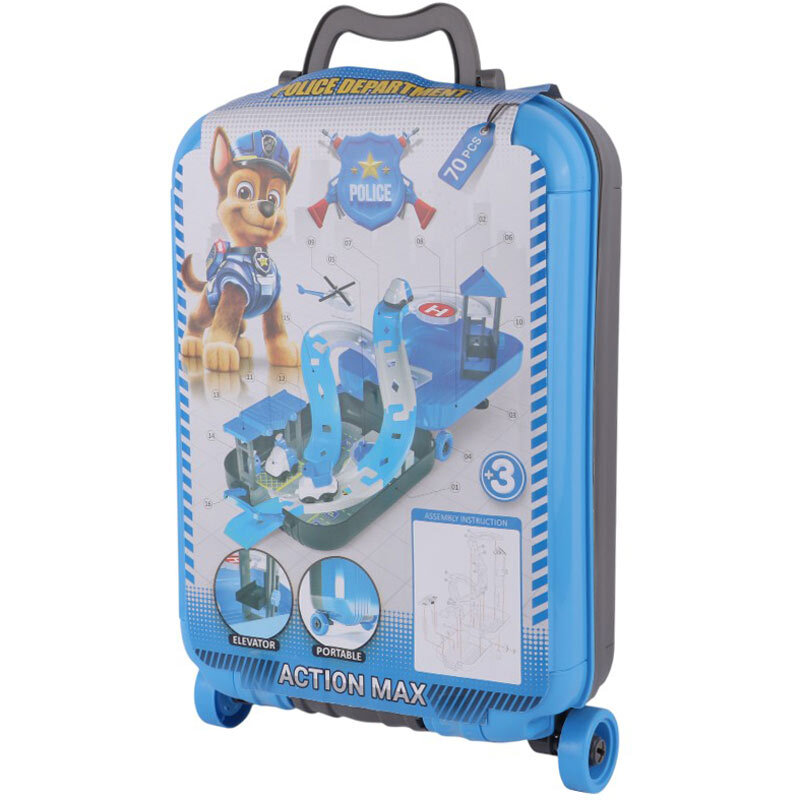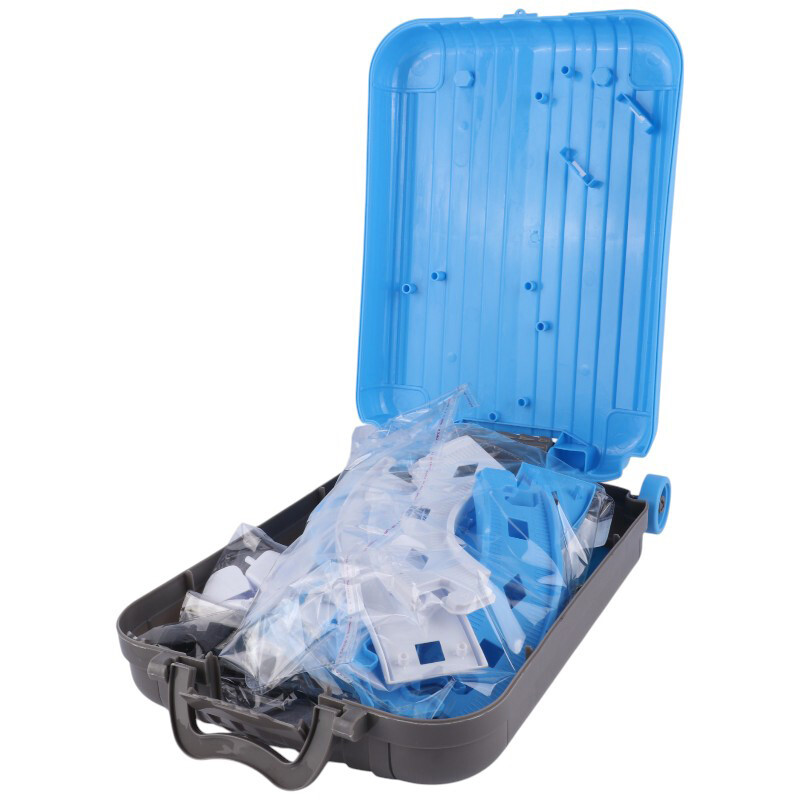 قرارگیری تمام قطعات داخل یک چمدان چرخ دار با دستگیره برای جابجایی آسان