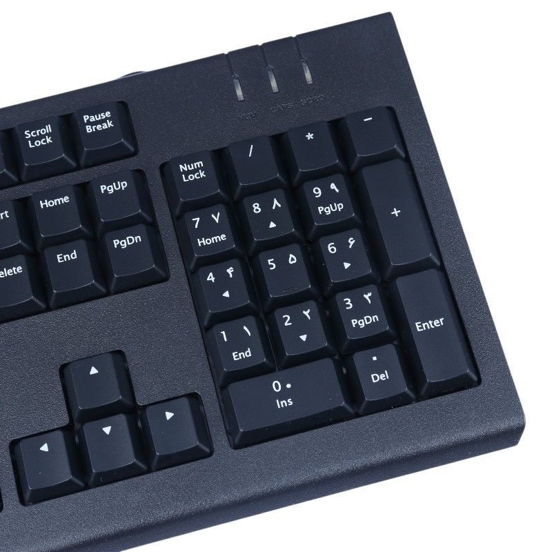 کیبورد با 104 عدد کلید شامل حروف انگلیسی و فارسی و ضربه پذیری تقریبی 10 میلیون بار کلیک