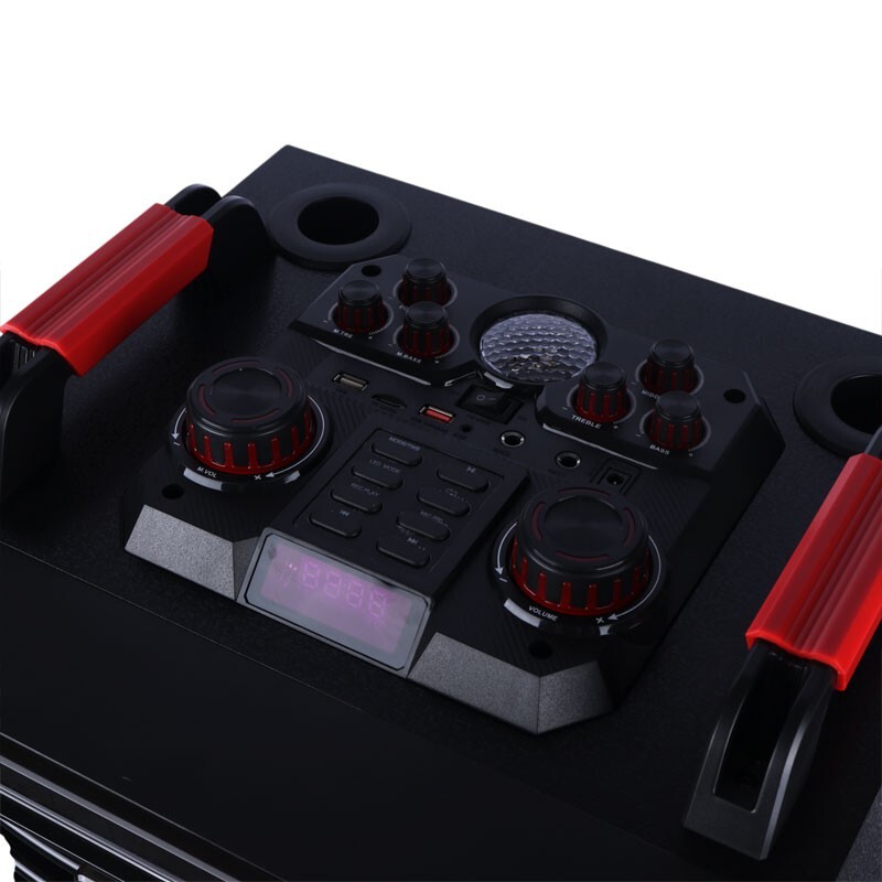 بهره مندی از درایو 2 درایو 12 اینچی با میزان توان خروجی کلی 100 وات، مدت زمان پخش موزیک به طور تقریبی برابر با 4 الی 5 ساعت