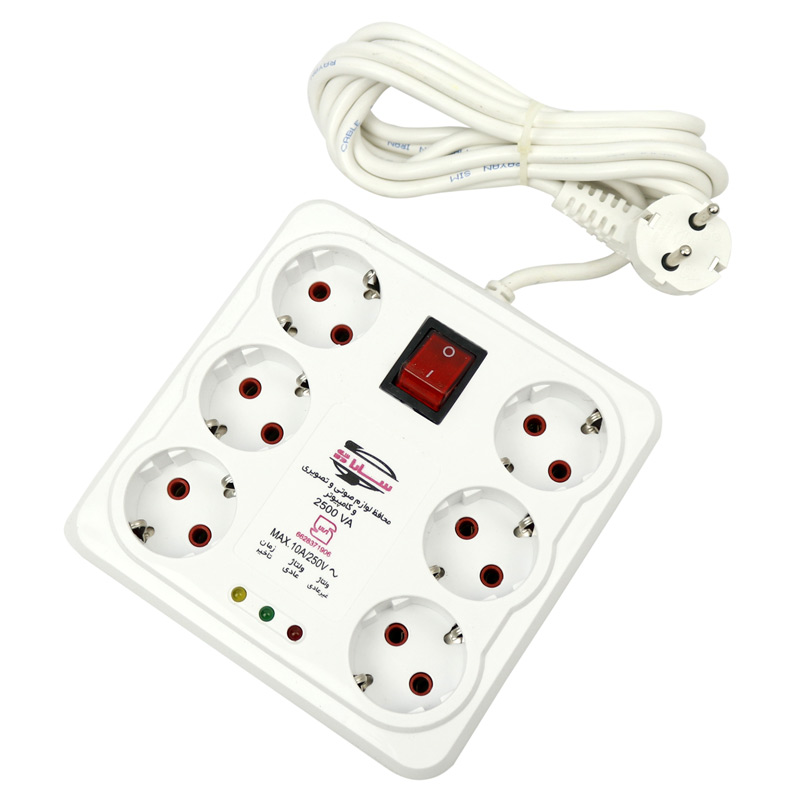 بدنه ساخته شده از پلاستیک مقاوم، دارای ۶ عدد پریز ارت دار و کلید روشن/خاموش