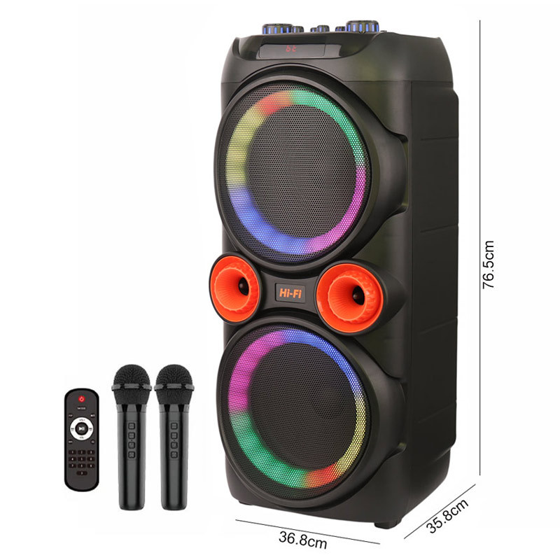 وجود دسته در بالای اسپیکر جهت حمل آسان، مجهز به نورپردازی RGB