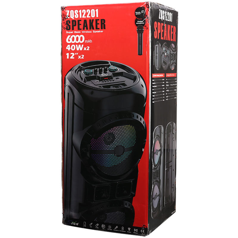 اسپیکر چمدانی بلوتوثی رم و فلش خور Sing-E ZQS12201 + میکروفون و ریموت کنترل