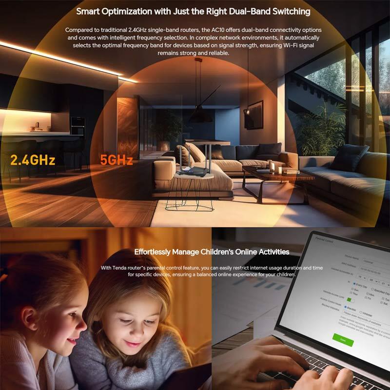 پشتیبانی از پروتکل های رمزنگاری WPA2-PSK و پروتکل IPV6، امکان مدیریت هوشمند از طریق اپلیکیشن Tenda WiFi، قابلیت کنترل از راه دور و مدیریت دستگاه های متصل