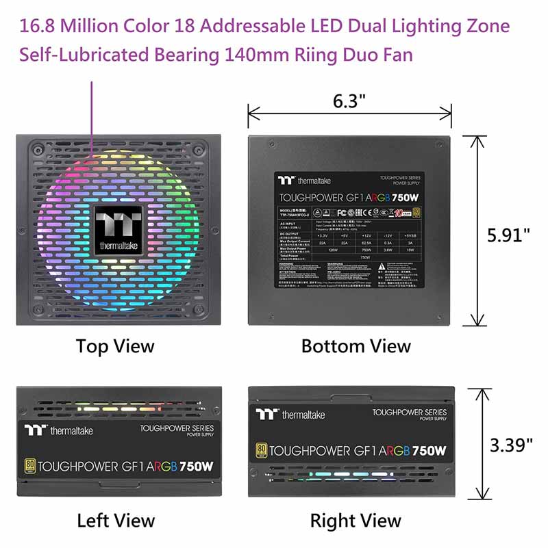 پاور ماژولار 750 وات ترمالتیک Thermaltake Toughpower GF1 ARGB Gold