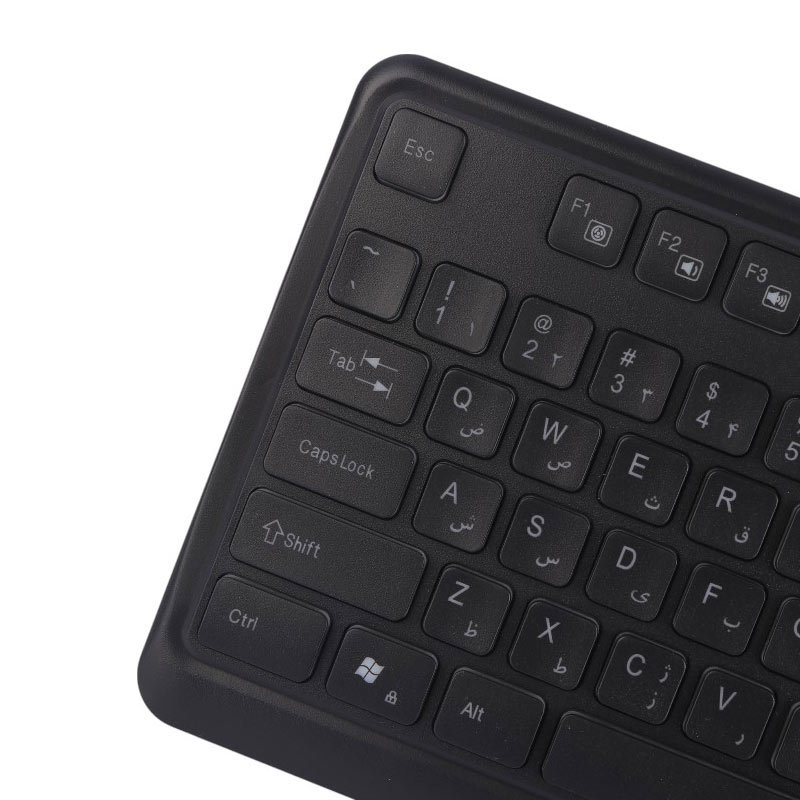 مجهز به 104 کلید فیزیکی با حروف حک شده فارسی و عمر مفید 10 میلیون بار کلیک، دارای کلید Fn و 12 عدد کلید مولتی مدیا