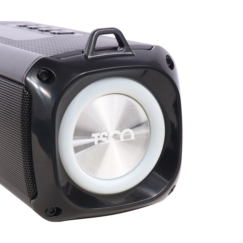 در چند سال گذشته، اسپیکر های تسکو توانسته داند جایگاه مناسبی در بازار بیابند و افراد زیادی خرید آن ها را توصیه می کنند. اسپیکر بلوتوثی رم و فلش خور TSCO TS 23004 یکی از اسپیکرهای جذاب تسکو است که در رنج قیمتی خود حرف های زیادی برای گفتن دارد. این اسپیکر را از پلاستیک سخت ساخته تا در برابر ضربه و فشار مقاومت مناسبی داشته باشد. همچنین TS 23004 به یک پنل نورپردازی چند رنگ مجهز شده که در هنگام پخش موسیقی جلوه های بصری زیبایی به شما ارائه می کند تا حس موسیقی را بهتر از همیشه به کاربر القا کند. اسپیکر TS 23004 بر روی بدنه از کلید های فیزیکی بهره می برد که برای تغییر حالت پخش، تعویض موسیقی، ولوم و … می باشند. تسکو، در بخش اتصالات پخش موسیقی برای TS 23004 سنگ تمام گذاشته و این اسپیکر می تواند به صورت بی سیم از طریق بلوتوث نسخه ۵٫۰ و یا به صورت سیمی از طریق فلش مموری USB، حافظه رم میکرو SD و یا از طریق کابل AUX به پخش موسیقی بپردازد. بنابراین از این نظر گزینه های متنوعی پیش روی شما قرار می گیرد و می توانید به راحتی موسیقی خود را پخش کند.