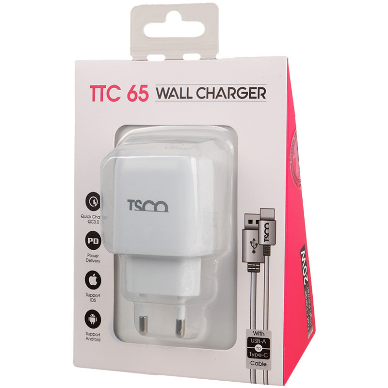 TSCO TTC 65 QC3.0 PD 3A 20W Wall Charger With Type-C Cable
