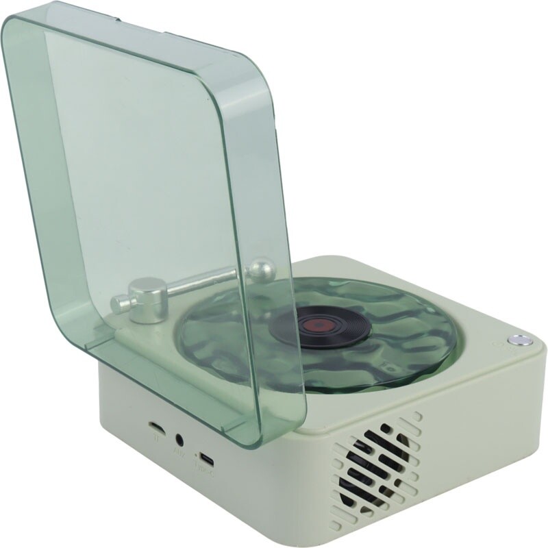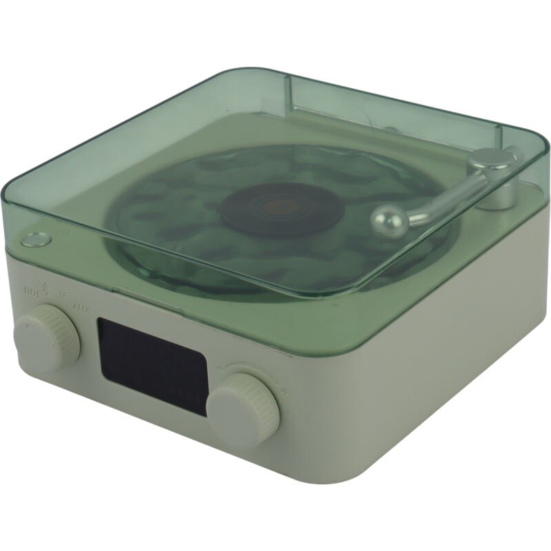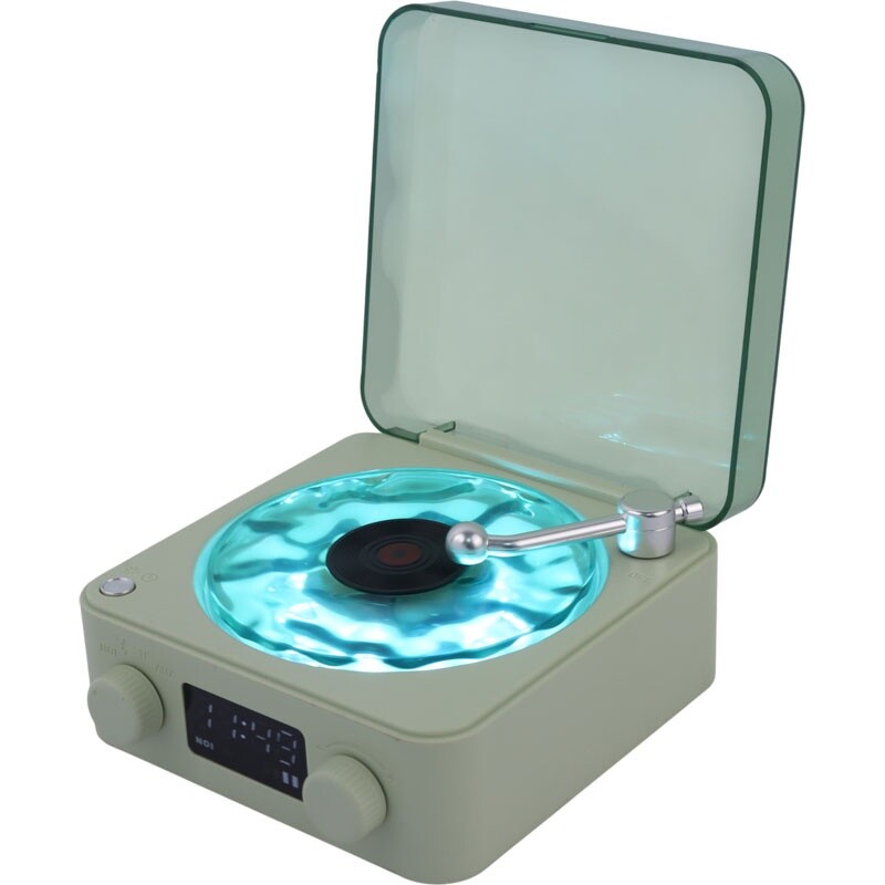 طراحی ترکیبی شامل اسپیکر استریو، چراغ خواب، نمایشگر زمان و باتری در قالب گرامافون قدیمی