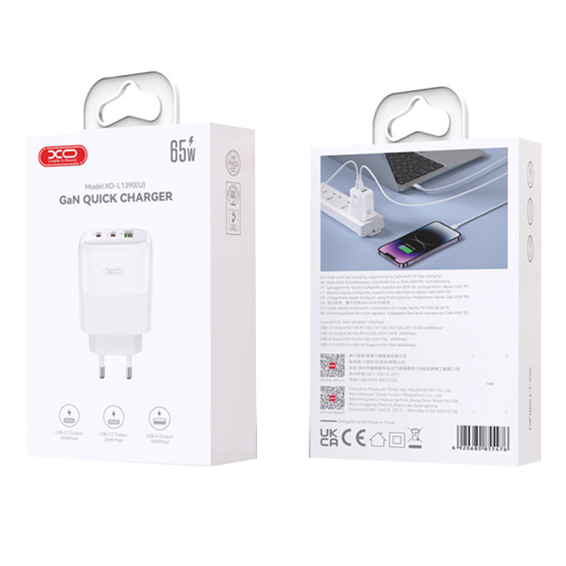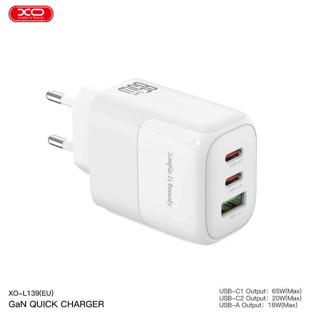XO-L139 GaN PD QC 3.25A 65W Fast Wall Charger