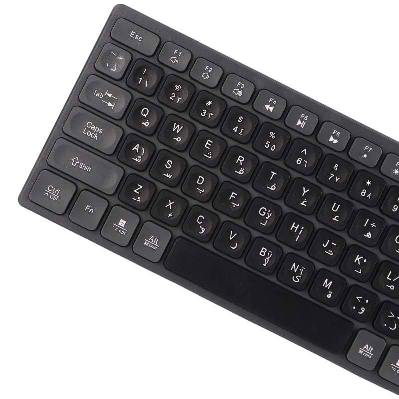 کیبورد مجهز به 110 کلید فیزیکی، دارای 15 عدد کلید مولتی مدیا، دارای حروف حک شده به زبان فارسی