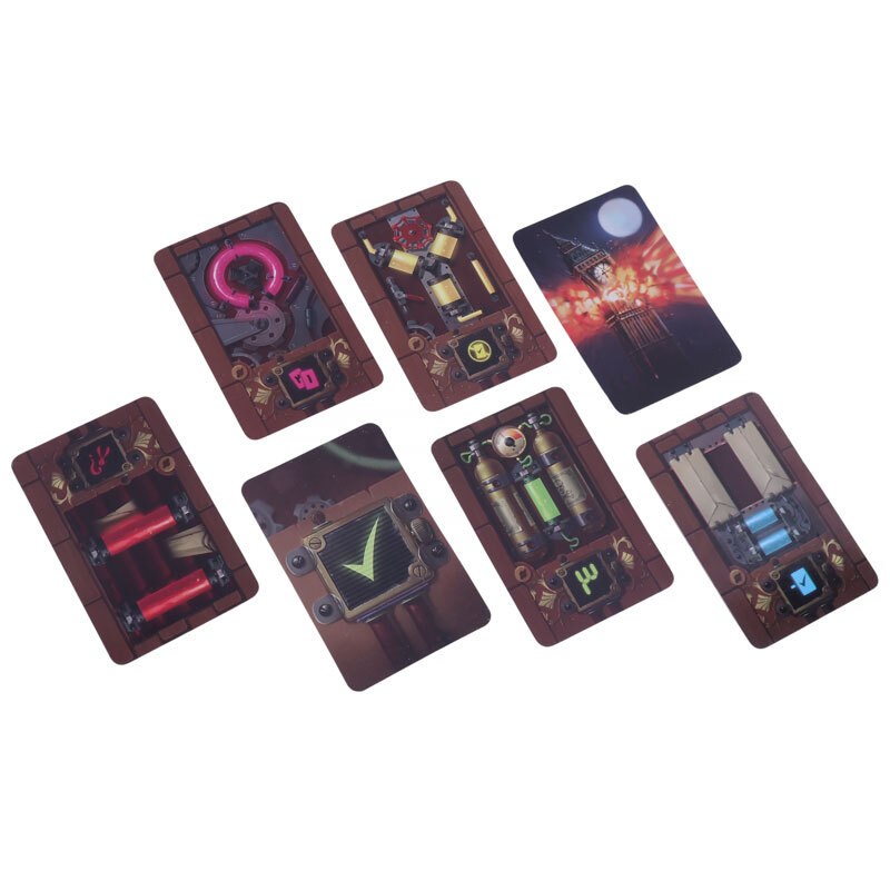 بمب ساعتی توی 4 دور بازی میشه و اگه تا آخر دور چهارم تیم شرلوک نتونن بمبها روخنثی کنن، تیم موریارتی برنده میشه! هر بازیکن توی نوبت خودش کارت سیمچین رو برمیداره و اونو روی کارت یکی دیگه از بازیکنها میذاره. حالا وقت رو کردن کارته! اگه کارت رو شده بمب اصلی باشه، تیم شرلوک سیم اشتباهی رو قطع کرده و بازی رو باخته. اگه کارت بمب رنگی باشه، هیچ اتفاقی نمیافته. اگه کارت خنثیکننده باشه، تیم شرلوک سیم یه بمب رو درست قطع کرده و یه قدم به بردن نزدیک شده. بازیکنی که یکی از کارتهاش رو شده نفر بعدیه و بازی به همین شکل ادامه پیدا میکنه. یادتون باشه تو پایان هر دور، کارت سیمهای رو نشده رو جمع کنین و بُر بزنین و دوباره تقسیم کنین تا هیجان بازی بیشتر بشه!
